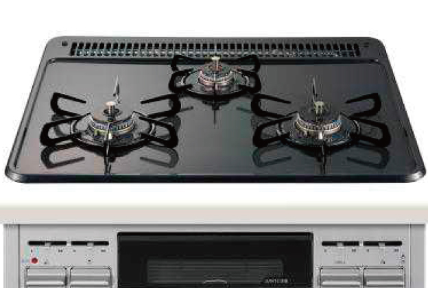 調理油過熱防止装置、消し忘れ消火機能、立ち消え安全装置、焦付消火機能など数々の機能を搭載した、便利で安全なSiセンサー付3口タイプ。