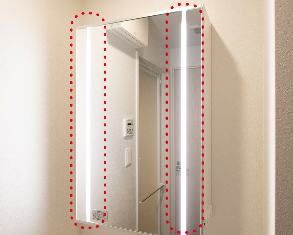 業界最高クラスRa80の演色タイプLEDを採用。本来の色味の再現性が高く、顔色が自然に見えます。洗面化粧台のワイドな照明で影もできにくく、顔色やお出かけ前のメイクの確認にも最適です。