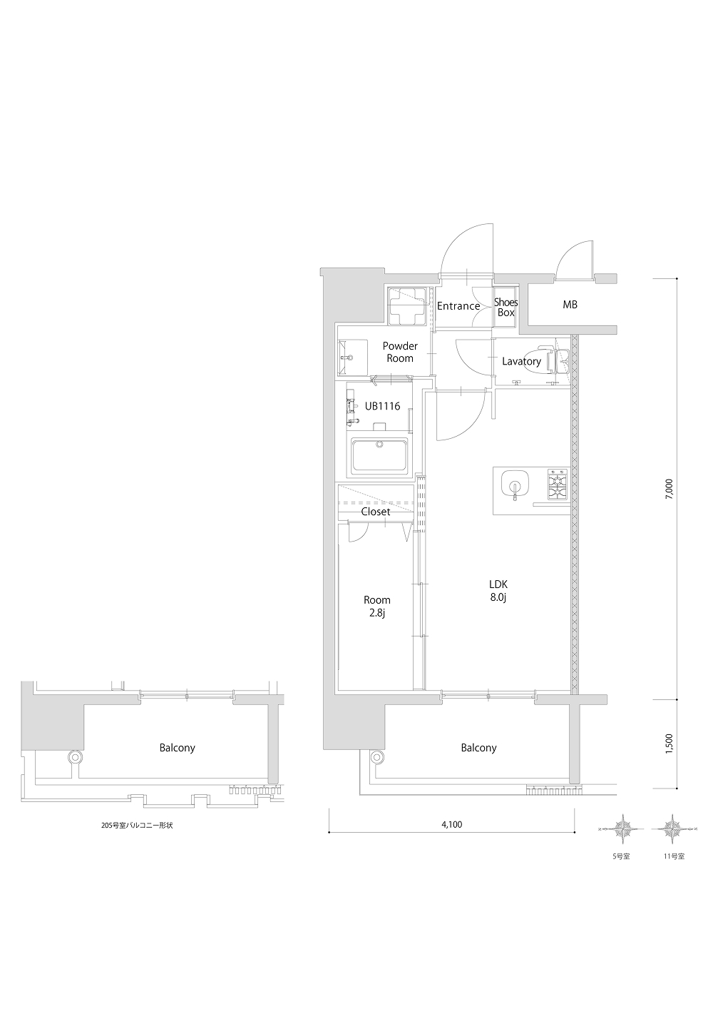 5.25㎡(205号室のみ6.15㎡)