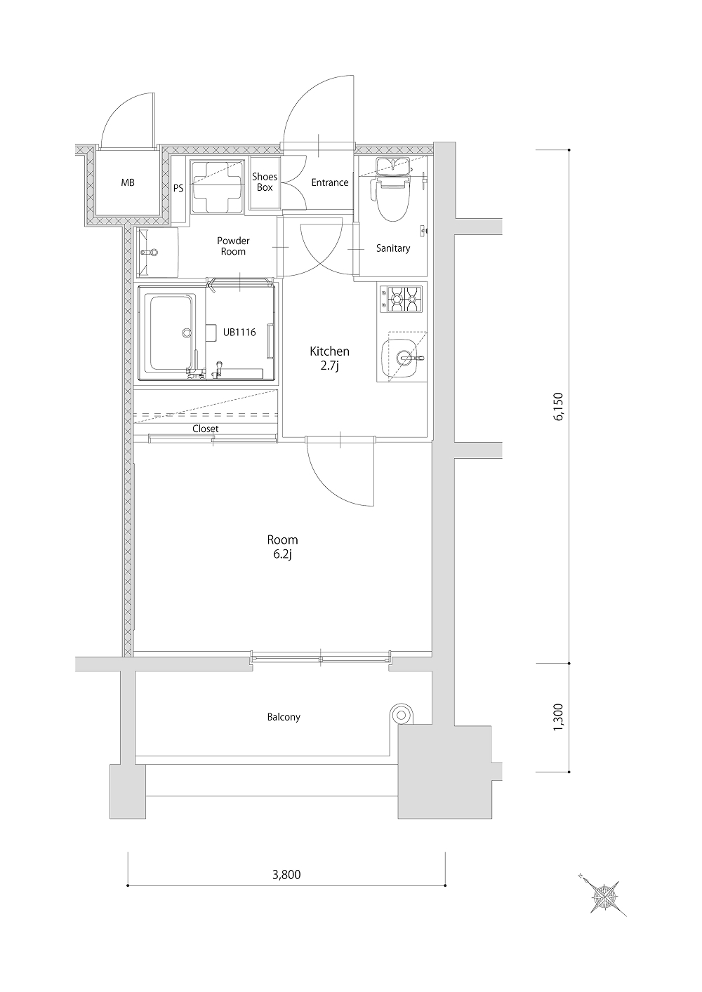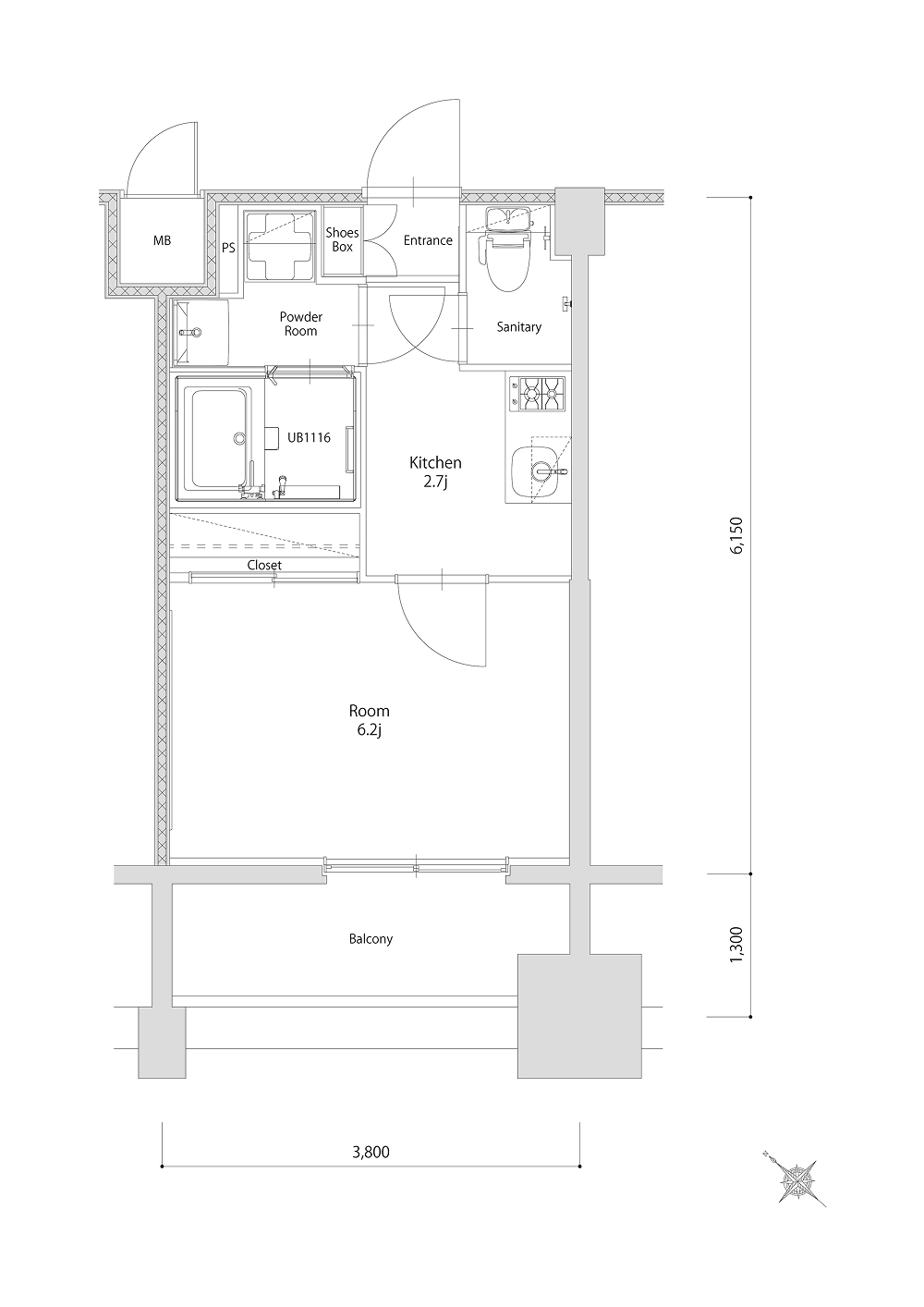 建物すべての面積は各タイプの専用面積の壁芯にて算出しておりますので、内法計算による登記簿記載面積は多少減少します。
